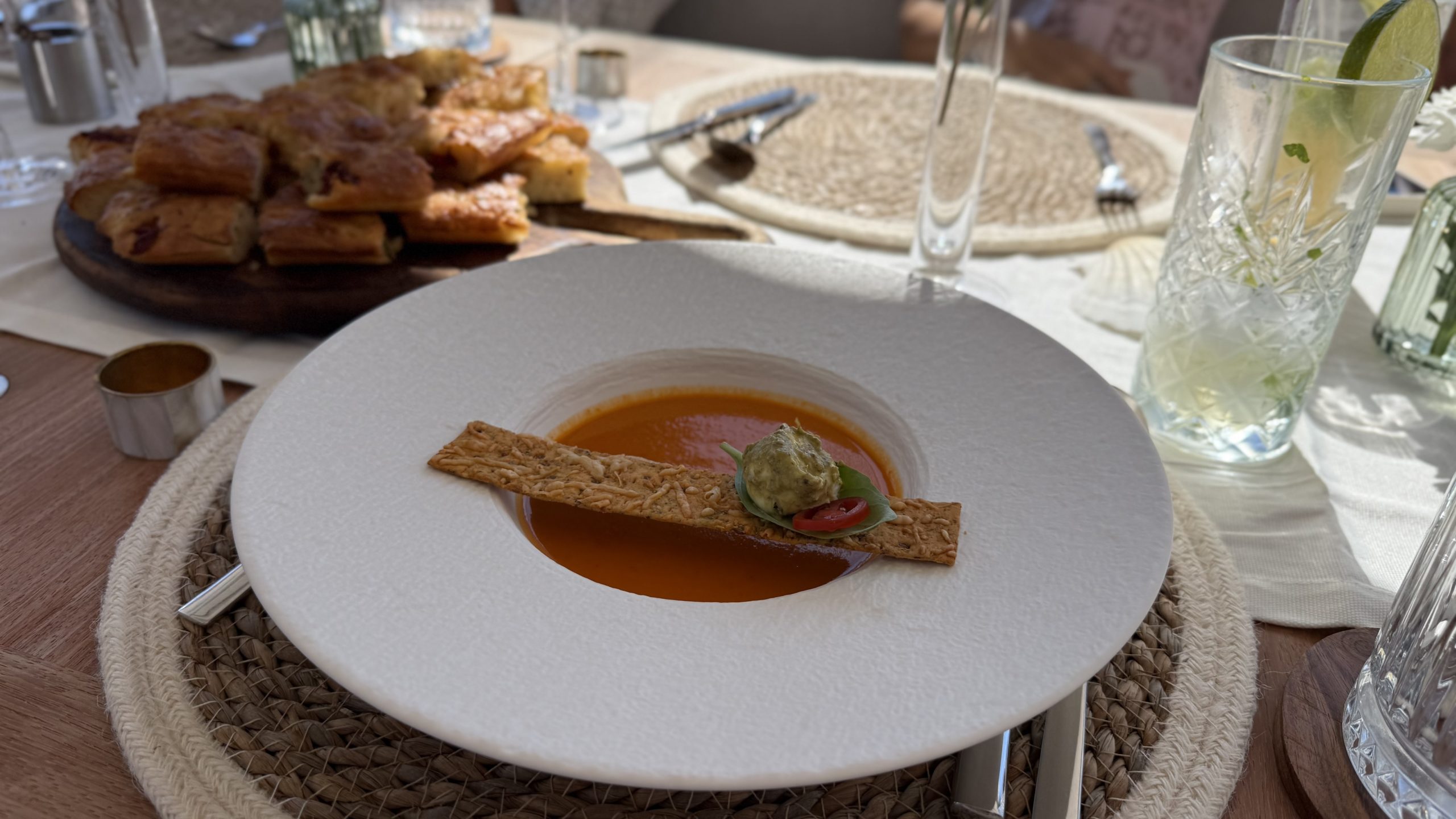 Next up, warm focaccia with sun-dried tomato and rosemary. Soft on the inside, lightly crisp on the outside, and dangerously moreish. The sort of bread you promise yourself you’ll only have one piece of… and then quietly have three or four!