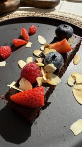 Dessert was a guilt-free win: chocolate brownie made with dates, no added sugar. Dense, chocolatey and satisfying — you’d never guess it was the “healthy” option.