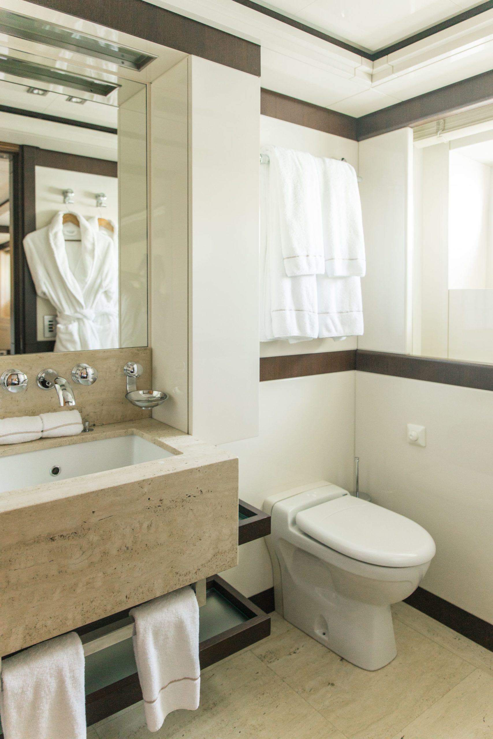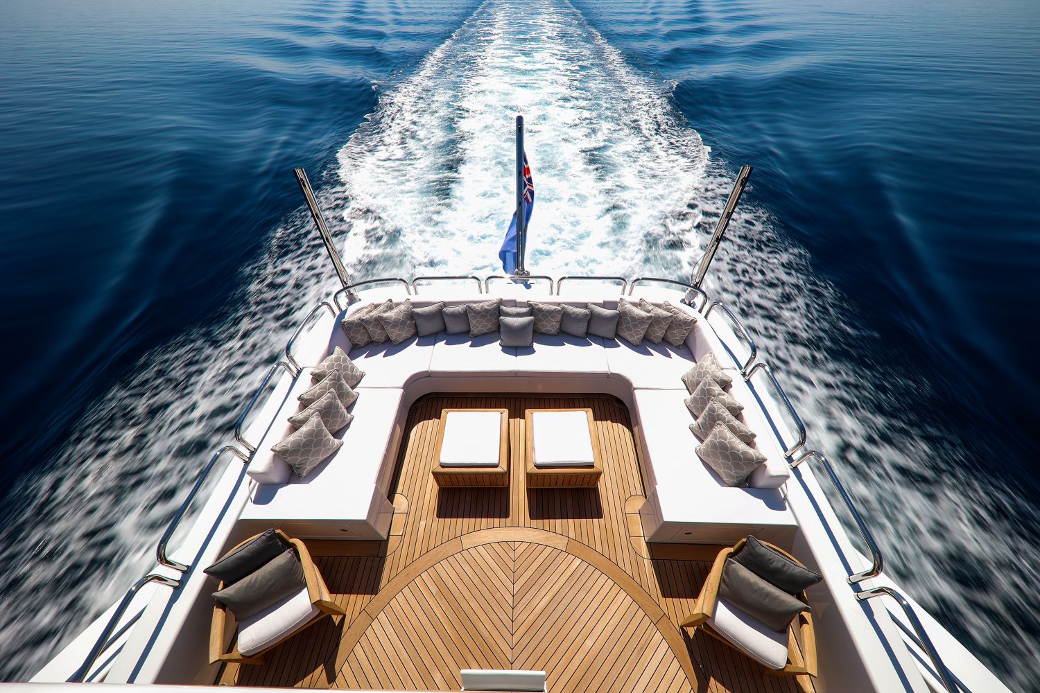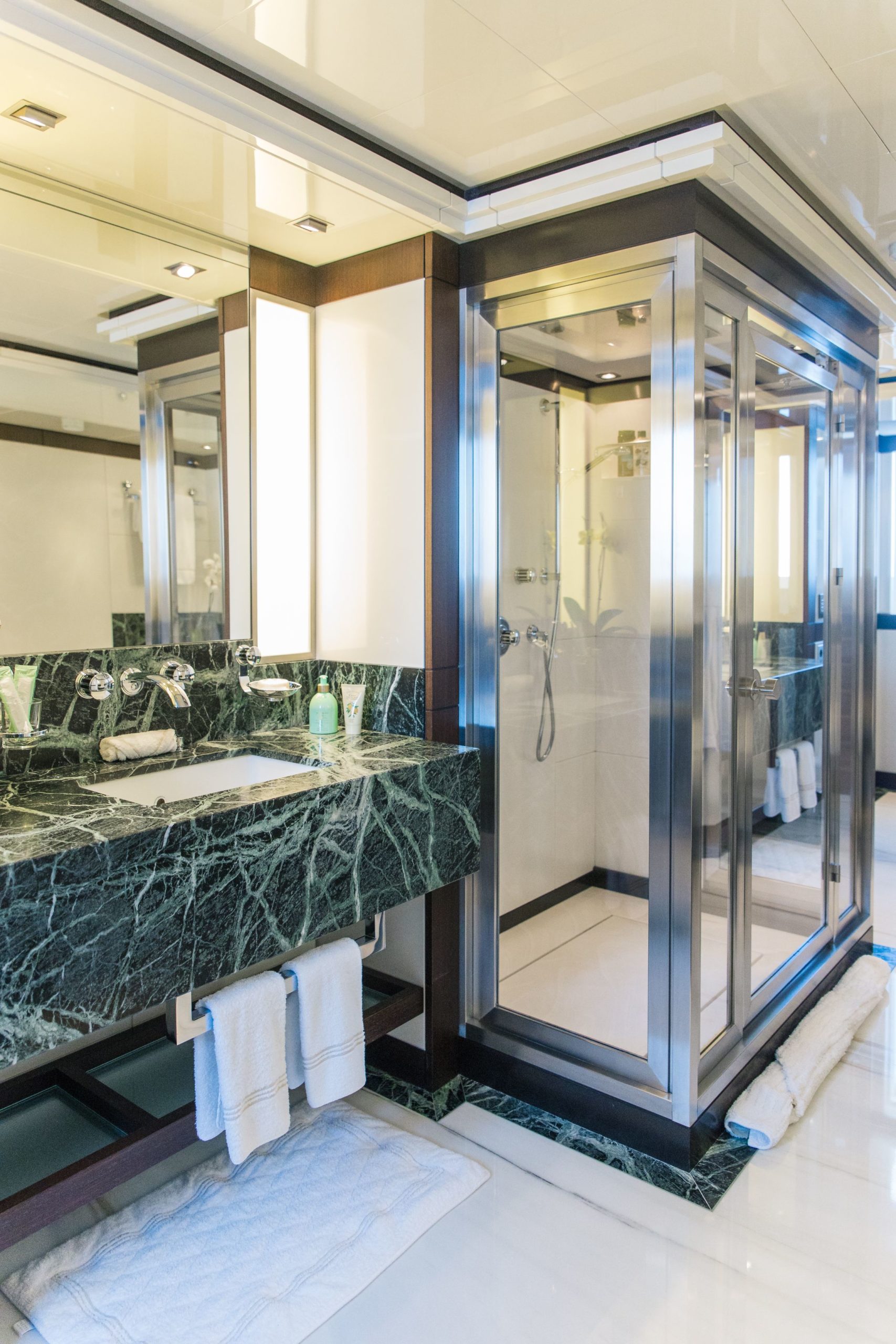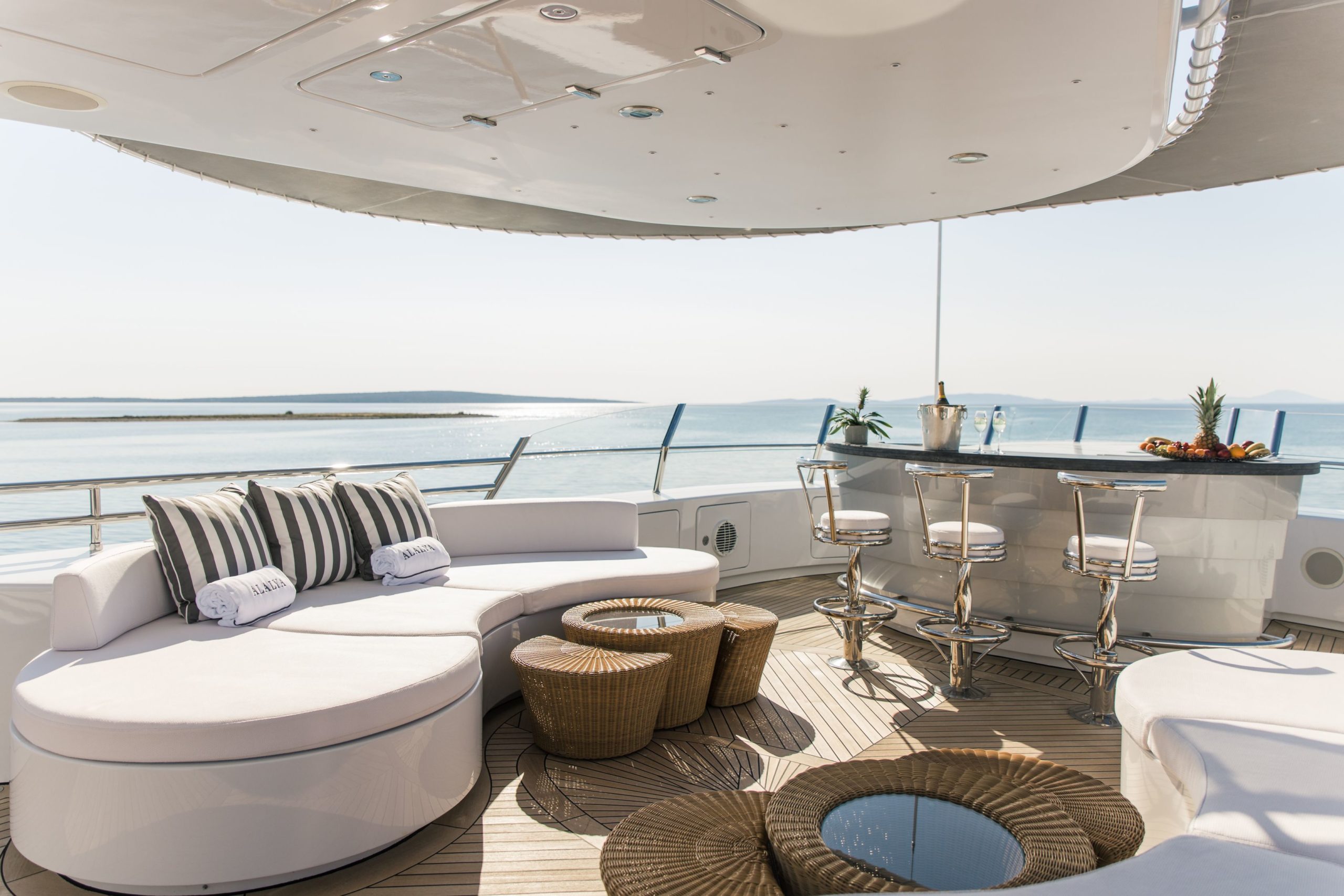 With multiple decks and dining options, this yacht adapts to suit the needs of the guests. A glorious sundeck boasts a jacuzzi and bar with sunbeds for all guests.