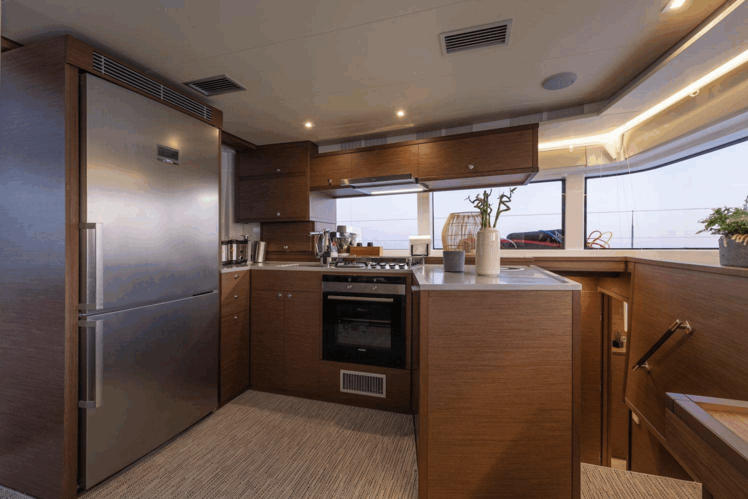 Luxurious and contemporary with soft shades for a harmonious interior, horizontal and fluent lines give the open and generous spaces continuity between exterior and interior life. A slender exterior design for a boat with a strong character.